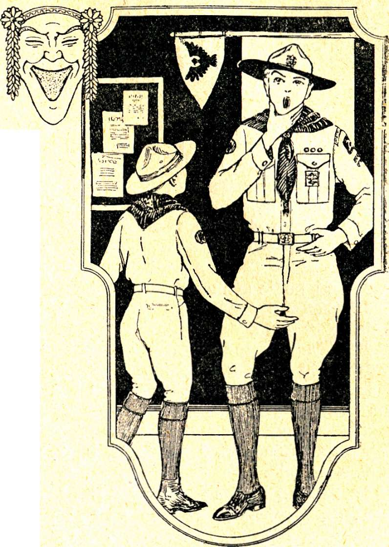 Tohle však není program přímo skautský. A ten nikdy nesmí chybět. Zařaďte proto i scény a příhody z vycházek a táborů, krátké a ne křiklavě tendenční. A také ne samé vaření a jídlo! U táborového ohně nenechte řečnit p. hajného, tatínka nebo p. doktora o významu, skautingu, je to vtíravě vyumělkované. Za to ale použijte vázání nováčkovských uzlů se zavřenýma očima, nebo za zády, kreslení spec. mapy dle diktátu na arších balícího papíru, jež jsou připevněny na stěnách mezi obecenstvem apod.
