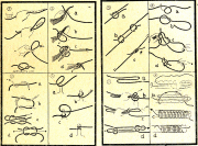 Štoček Stehlíkova skaut. kalendáře. Šest nováčkovských uzlů 1. Názvy, 2. Škotský, 3. Ambulanční, 4. Lodní smyčka, 5. Rybářský, 6. Pevná smyčka, 7. Zkracovačka, 8. Koncování lana.